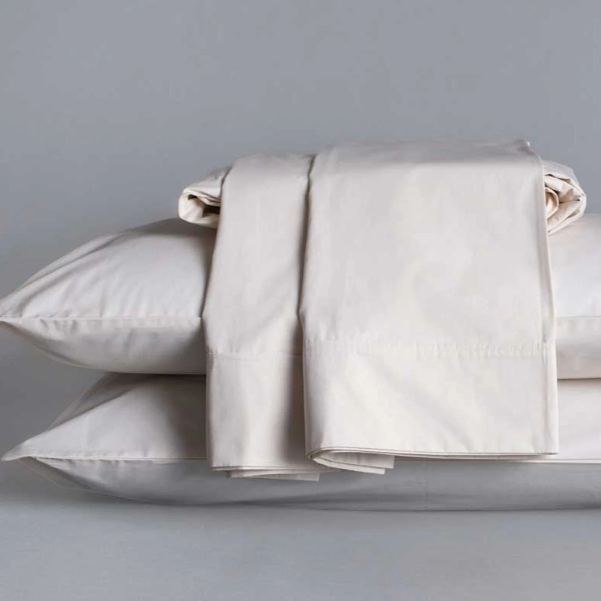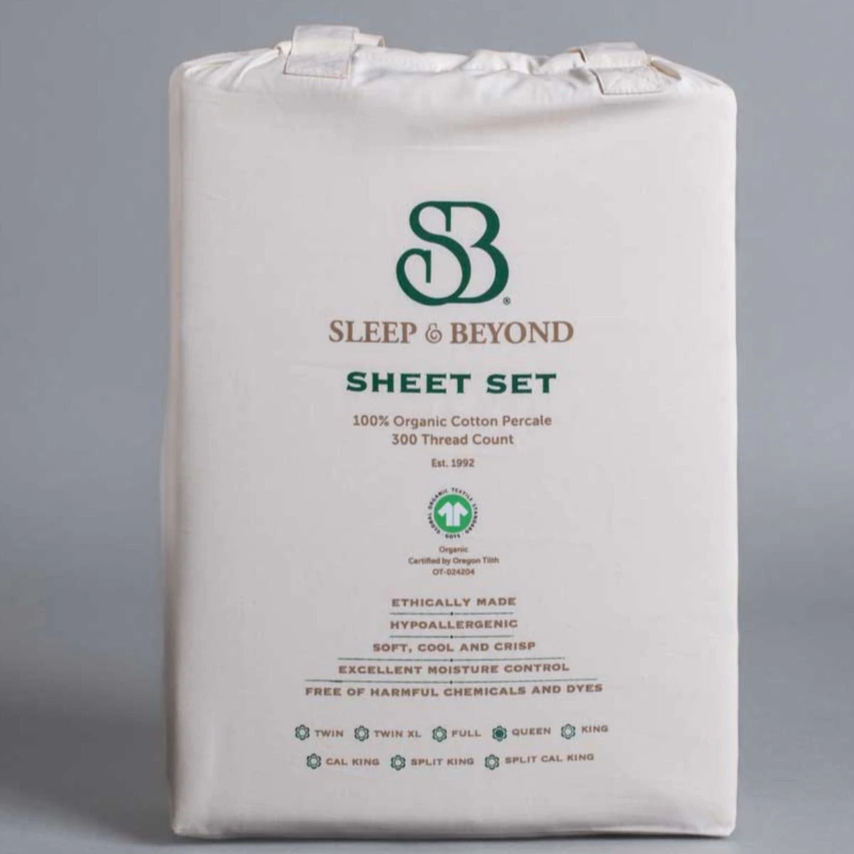 Hot sleepers and those that live in warmer climates can get a cool and breathable night’s sleep while dozing in this organic cotton percale sheet set. Percale sheets are revered for their crisp feel and lightweight quality and are often the go-to for luxury hotels. Trend setting technology improves the traditional 300 thread count imparting additional durability, performance and softness into the final product. Keeping with the highest levels of sustainability, each set arrives in reusable and biodegradable packaging, and includes a flat sheet, fitted sheet, and 2 pillowcases (one pillow case with Twin set).