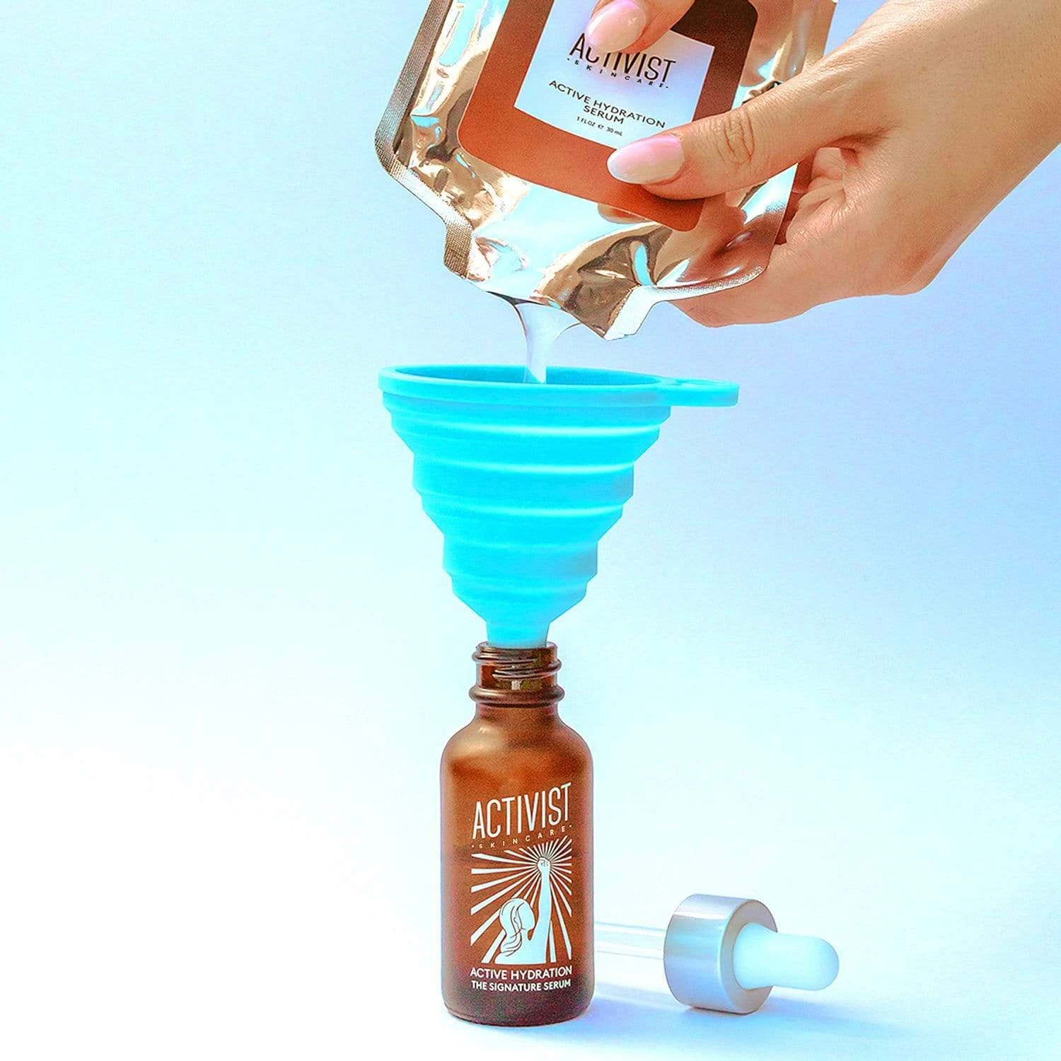 How to dispose of the refill pouches: The refill pouches are made of mylar, a lightweight, durable type of plastic. These pouches reduce shipping emissions (by 115%) and don’t need the protection of boxes and padding during shipment (unlike glass). Each pouch can be recycled via TerraCycle, so you can drop used pouches in a TerraCycle drop box, or ship them back to Activist Skincare free of charge by requesting a shipping label. Before you get bummed about not being able to recycle the pouches easily, remember that the point of recycling is to reduce the waste of materials and energy, both of which you’re already doing by refilling your containers with pouches that use less way resources than glass packaging! As green tech advances, so will Activist Skincare!