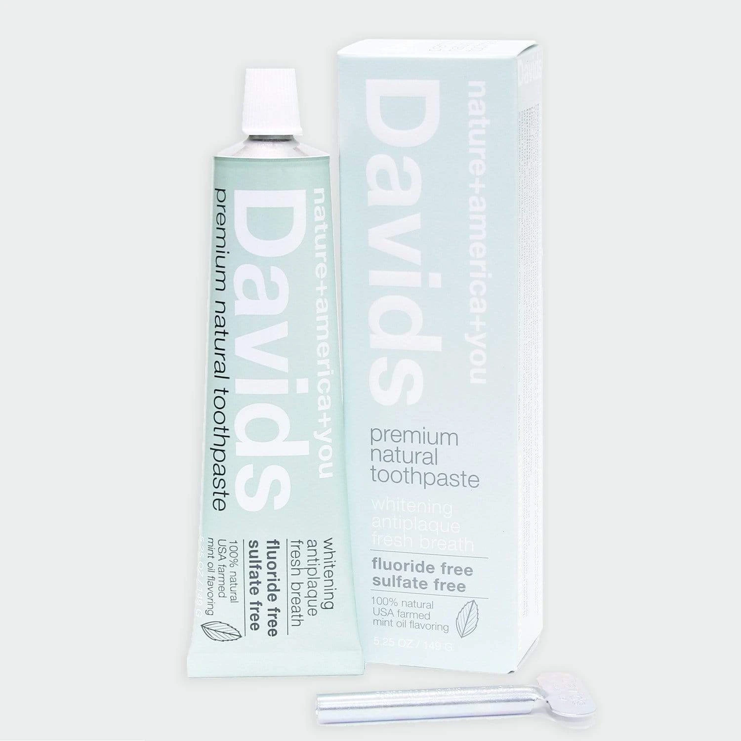 Time to toss your harmful plastic toothpaste tubes out the door! Made with a focus on sustainability, mindfulness, and oral health, Davids natural toothpaste will have your mouth squeaky clean and your teeth sparkling.