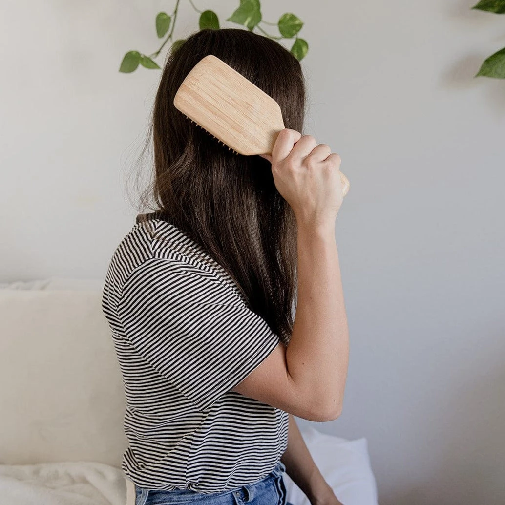 Brushing your hair with bamboo helps reduce static and frizz, promotes hair growth, stimulates blood flow to the scalp, detangles without pulling, and promotes soft, shiny hair.Â