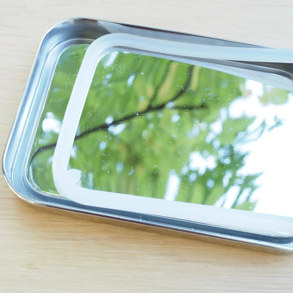 Materials:Â 100% high-quality, food-grade stainless steel;Â A clear food-grade silicone gasket, which is tucked inside the perimeter of the lid, creates a leak proof seal when the lunch box is clipped closed.