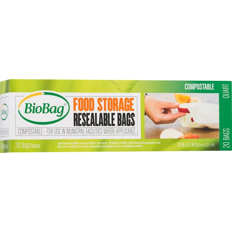 Need snacks for on-the-go? Toss out the wasteful plastic bag and opt for a compostable and more sustainable choice! These BioBag Resealable Food Storage Bags are made from a breathable plant-based resin from Italy and manufactured in the USA using GMO-free crops. Great for leftovers and lunch, both the bag and resealable zipper are certified compostable by the Biodegradable Products Institute and meet the US Standard ASTM D6400 for commercial compostability. Keep food fresh, help the environment, and say goodbye to plastic with these eco-storage bags!