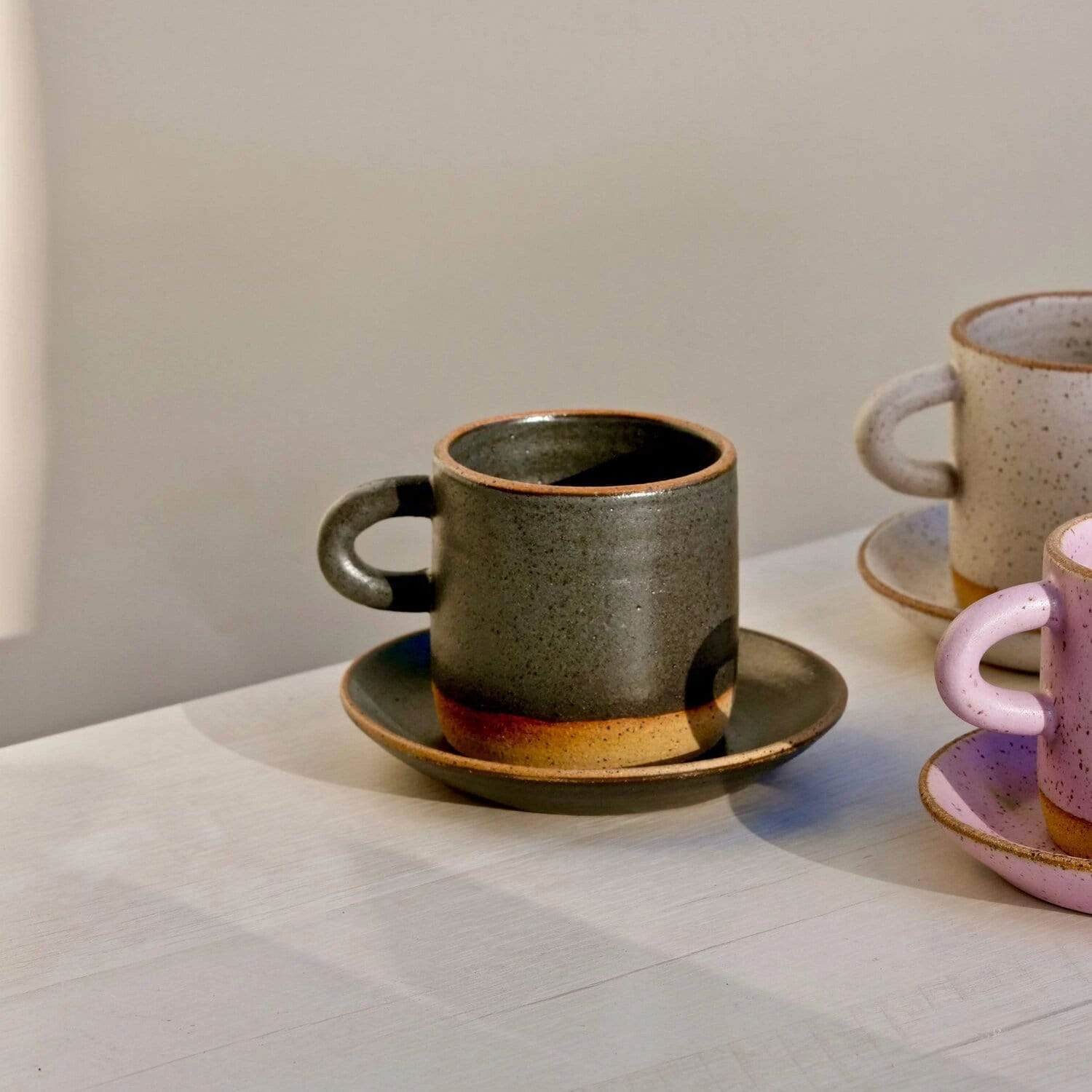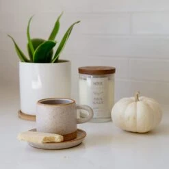 Get cozy next to the computer and sip on your favorite warm beverage in Earth + Element handmade ceramic cup and saucer set. These cups are great for coffee, tea, or yummy elixirs.
