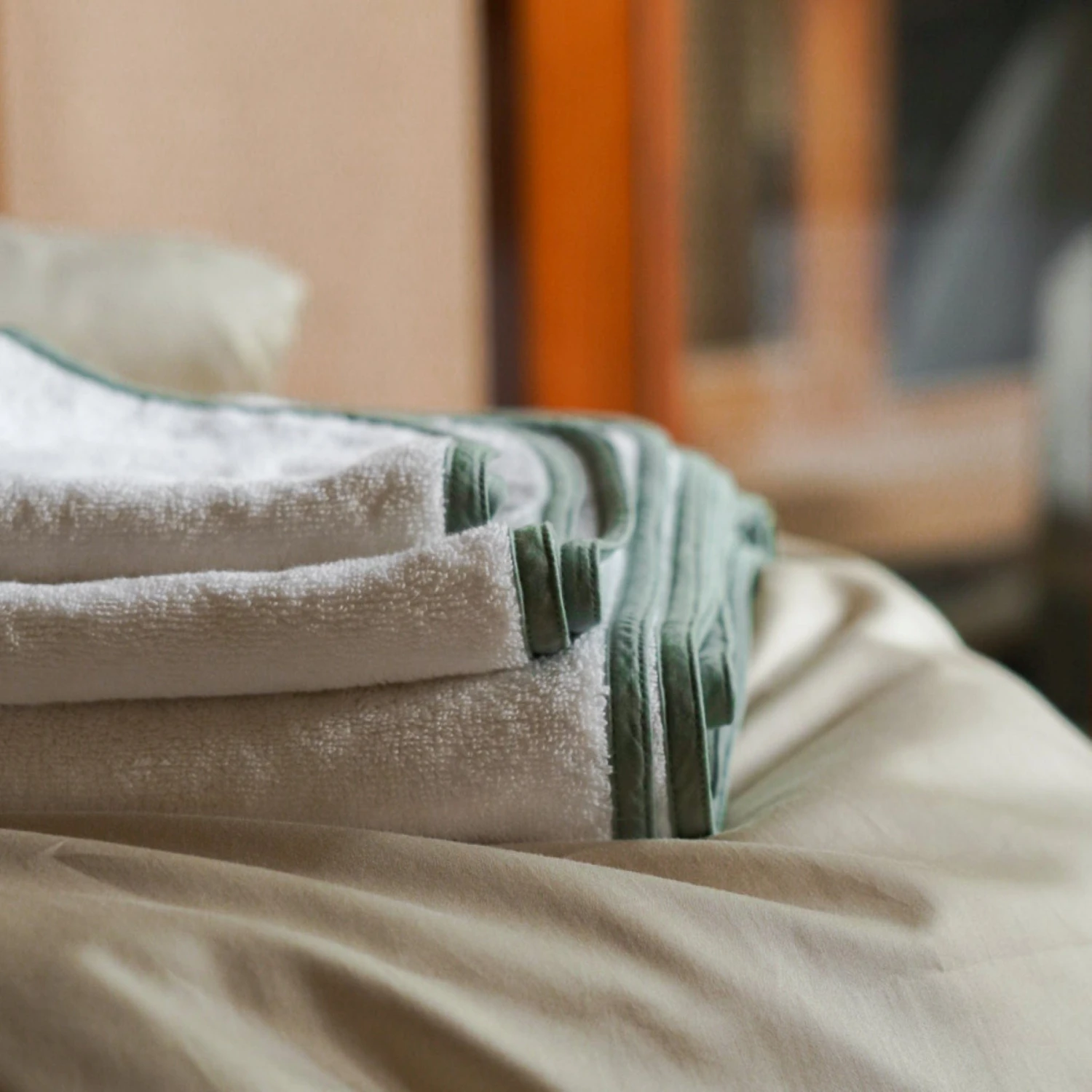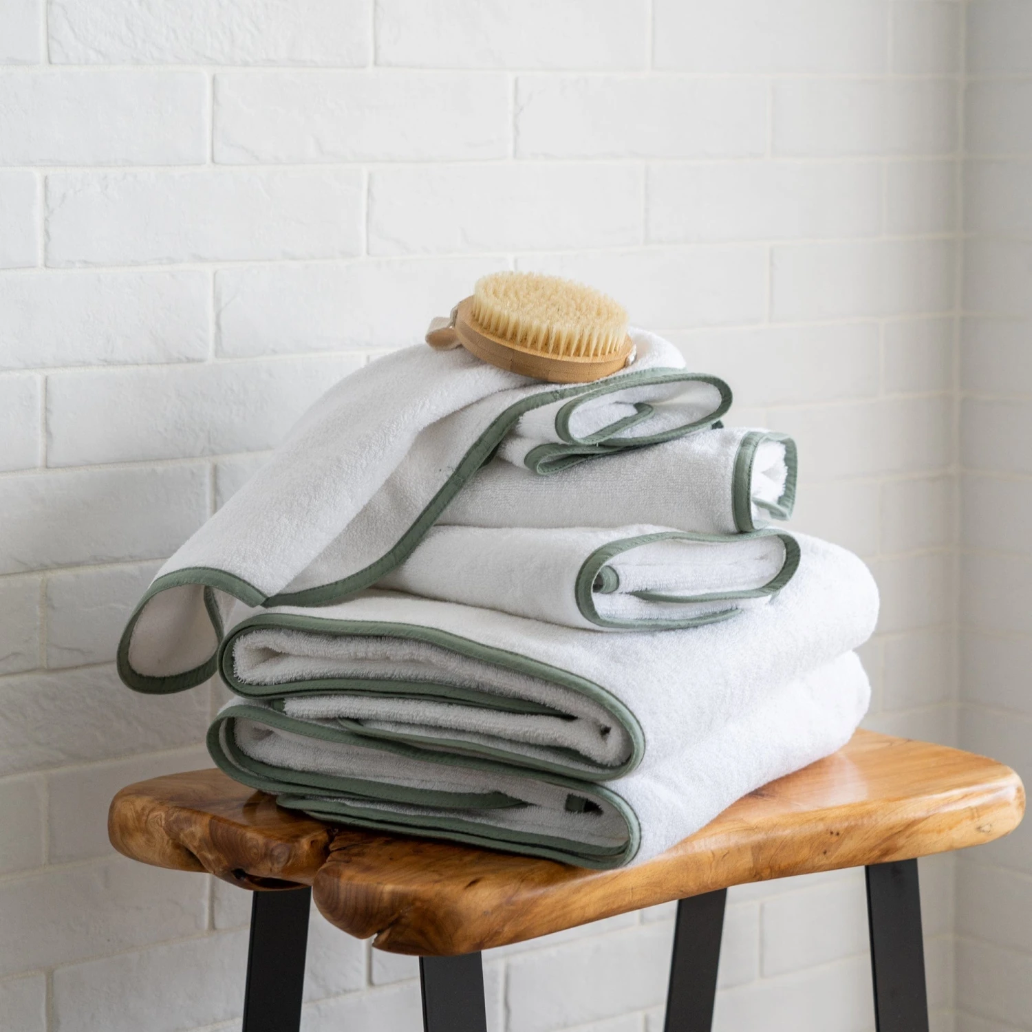 Homebird Textiles Classic Complete Bath Towel Set (6 pieces) are made from 100% GOTS-certified, long-staple organic cotton, free of toxic chemicals and gentle on your skin. Super-soft, absorbent, and quick-drying, they balance practicality and luxury. Rounded corners and piped edges give them a modern, elevated look to enhance your daily routine.