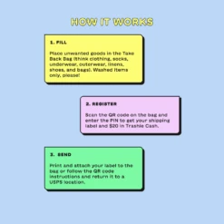 Did you know, according to the EPA, approximately 84% of donated textiles are thrown away each year? While such a large percentage of donated clothing is unwanted by consumers, there must be another use for all those items that no longer fit in our closets. Simply send your unloved or damaged items to For Days and let the circular economy begin. With the For Days Take Back Bag, not only do your unloved clothes and textiles get a new life, but you are rewarded for making an eco-friendly choice. With this $20 Take Back Bag™, you will earn $30 in TrashieCash™ once they receive your items, which you can redeem on ZWS!Â
