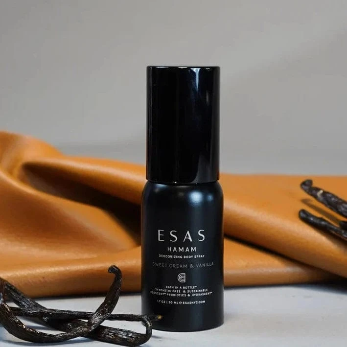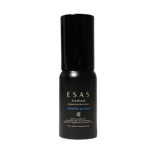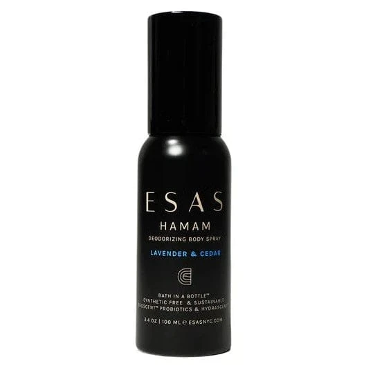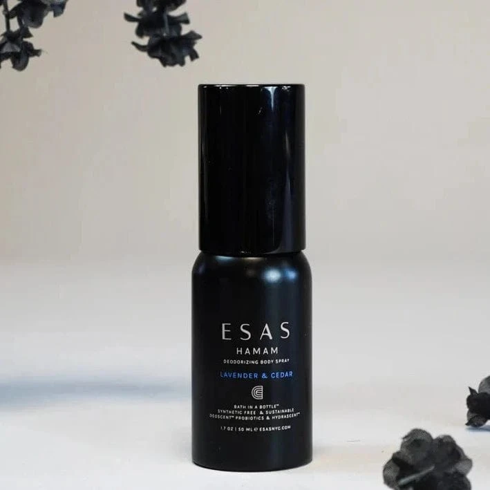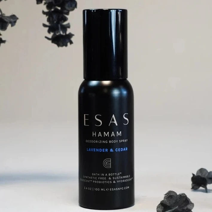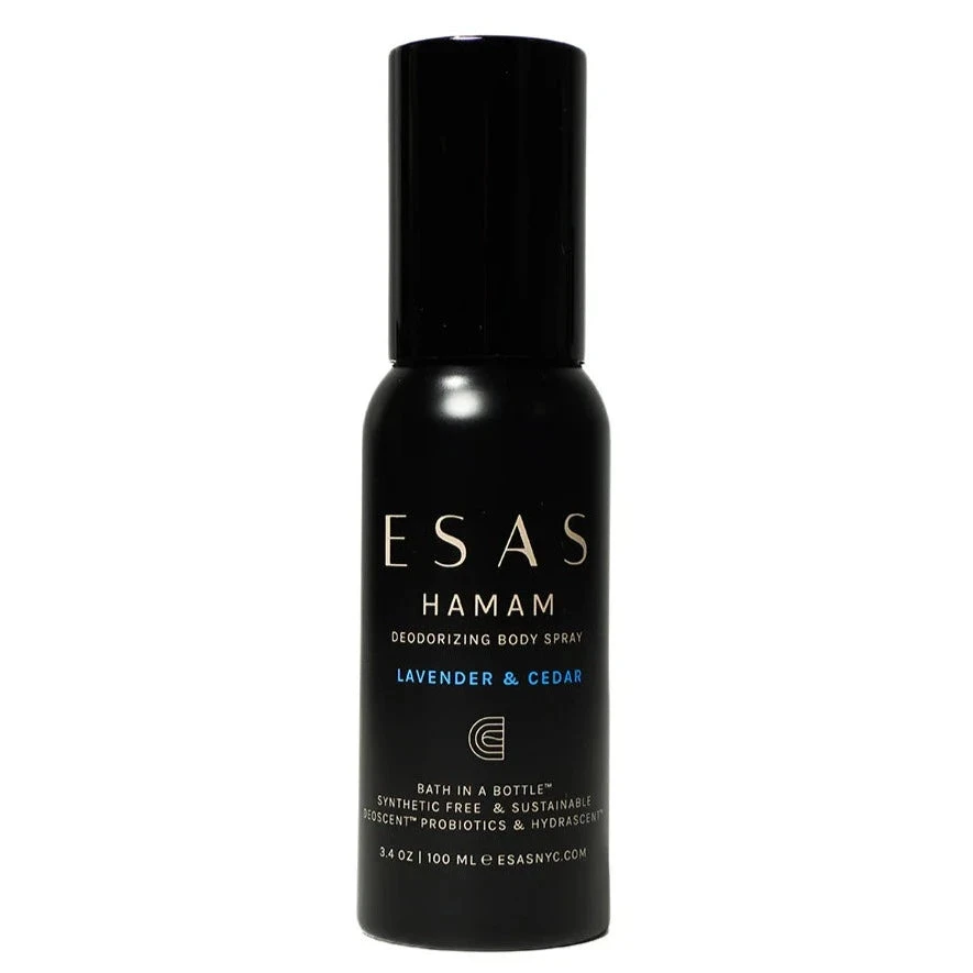 Designed to purify and cleanse the body, mind & spirit while evoking Roman Baths and ancient Hamam rituals, Esas Body Splash is like a “bath in a bottle”. Scientifically formulated, only the purest ingredients are used to cleanse, deodorize, and refresh wherever you go.Â