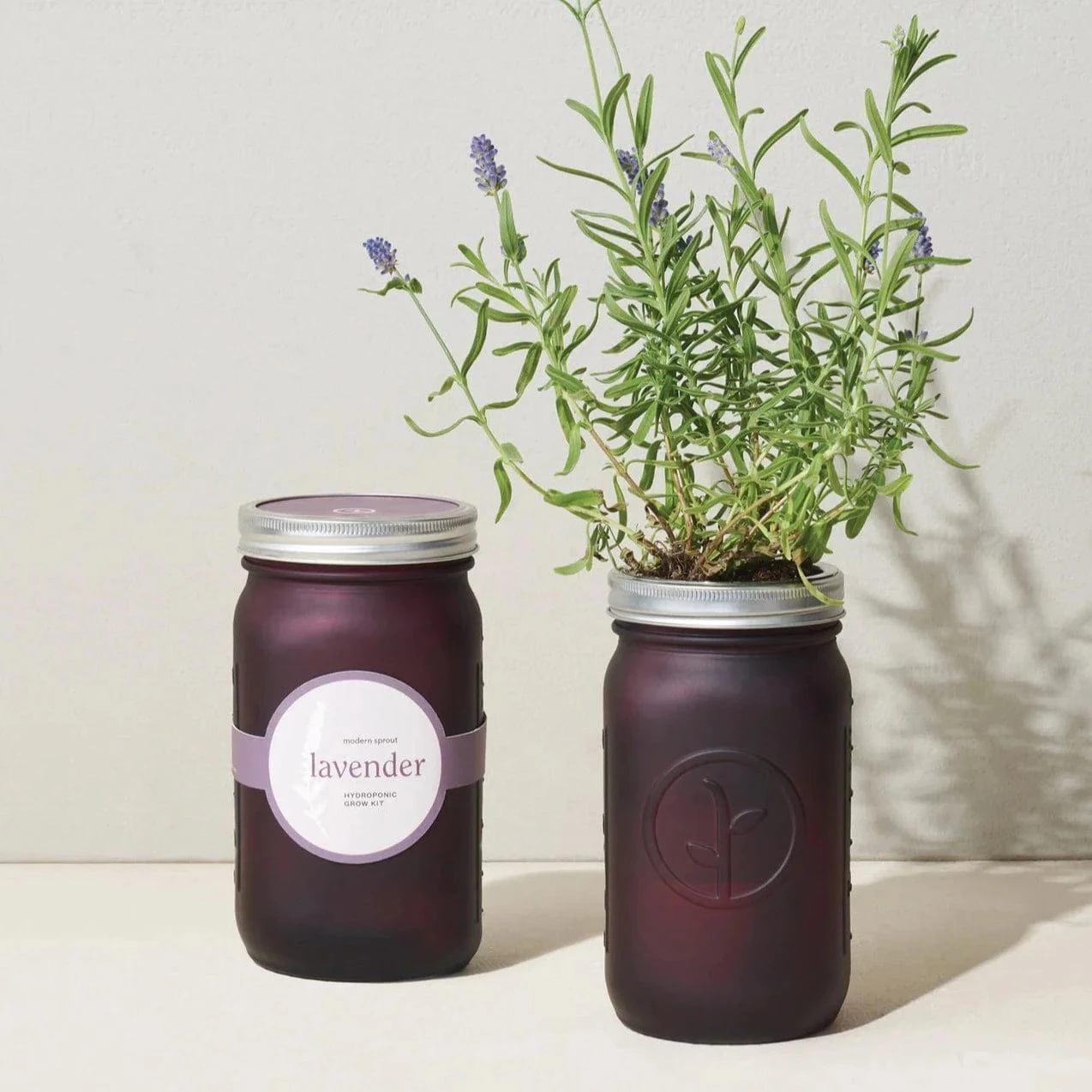 Includes: Mason Jar w/Removable Sleeve (Glass & Sleeve are recyclable); Organic Seeds (choose Lavender, Basil, Cilantro, Rosemary or Parsley), 100% Recycled HDPE Net Pot (Made in the USA), Lava Rock Grow Medium (sourced domestically), Plant Food, Coaster, Instruction Manual
