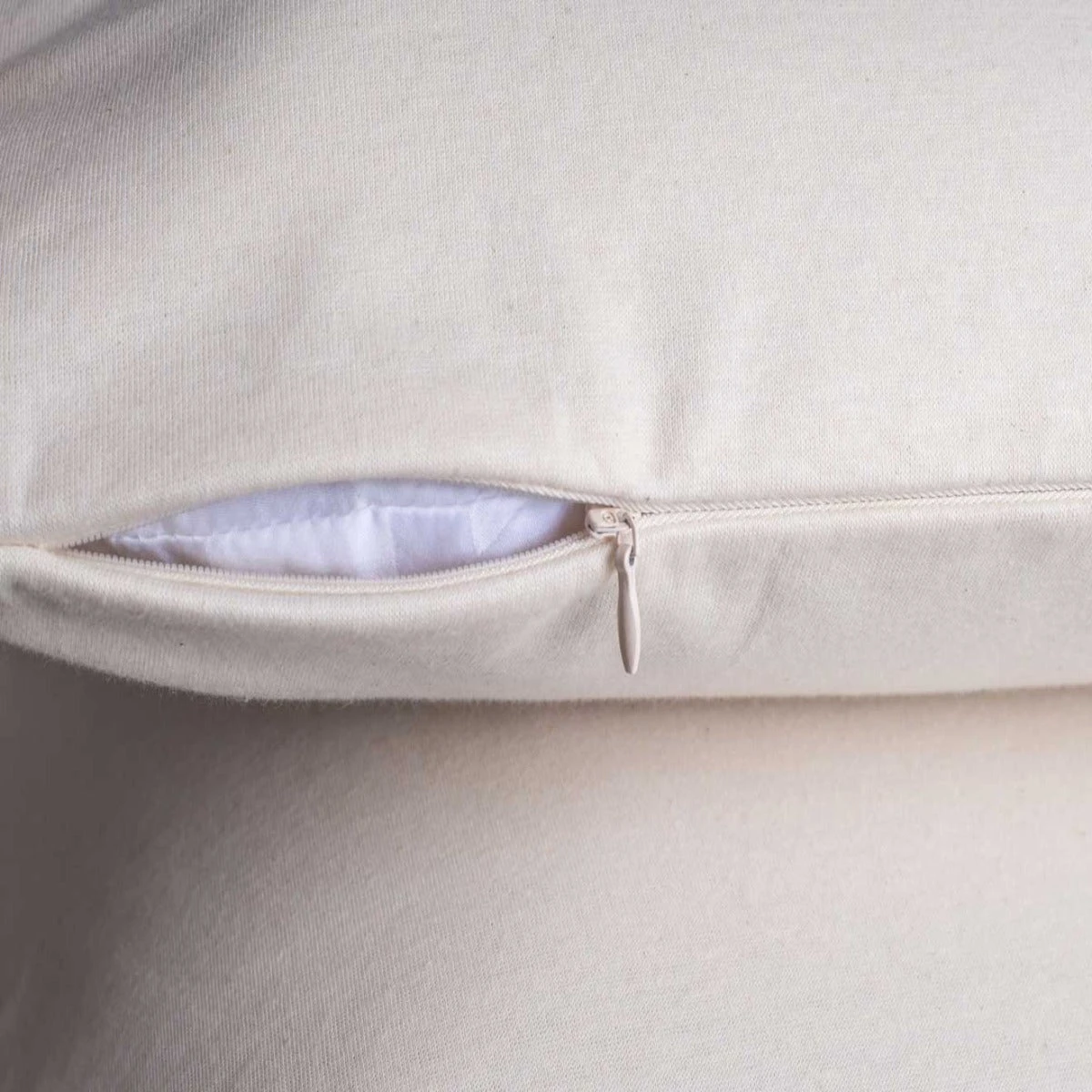 Our heads spend about 50 hours a week being cradled by our pillows so it only makes sense that that kind of closeness is protected.  Crafted with two layers of soft 100% organic cotton jersey with a waterproof backing, your pillows and your head are protected from dust mites, allergens, spills and accidents. Fabic is fully breathable making sure you stay cool and comfortable. The zipper enclosure makes caring for your protector easier than ever to remove and wash. As with all products that come out of Sleep & Beyond’s sites, this product is GOTS certified, ensuring your protector is ethically and eco-consciously made from start to finish. Â