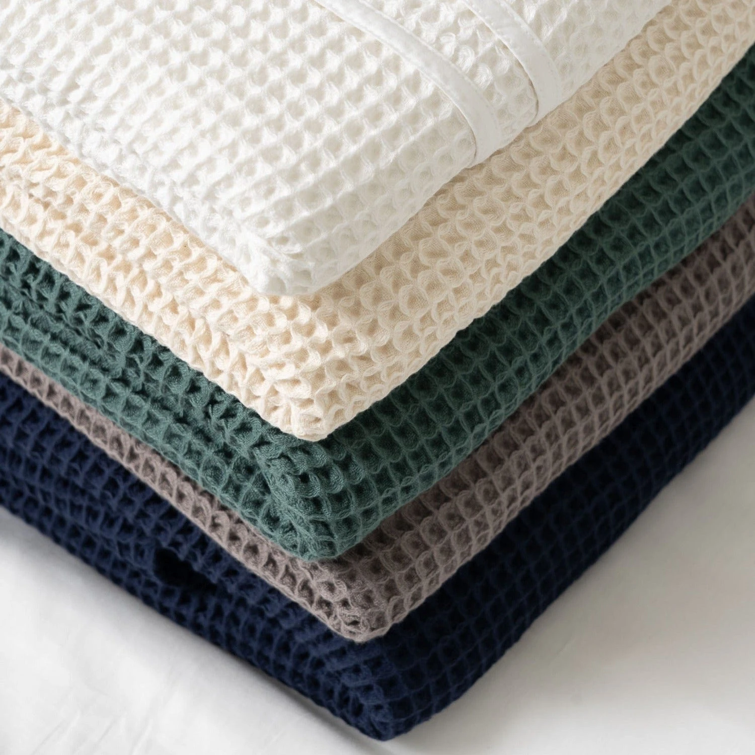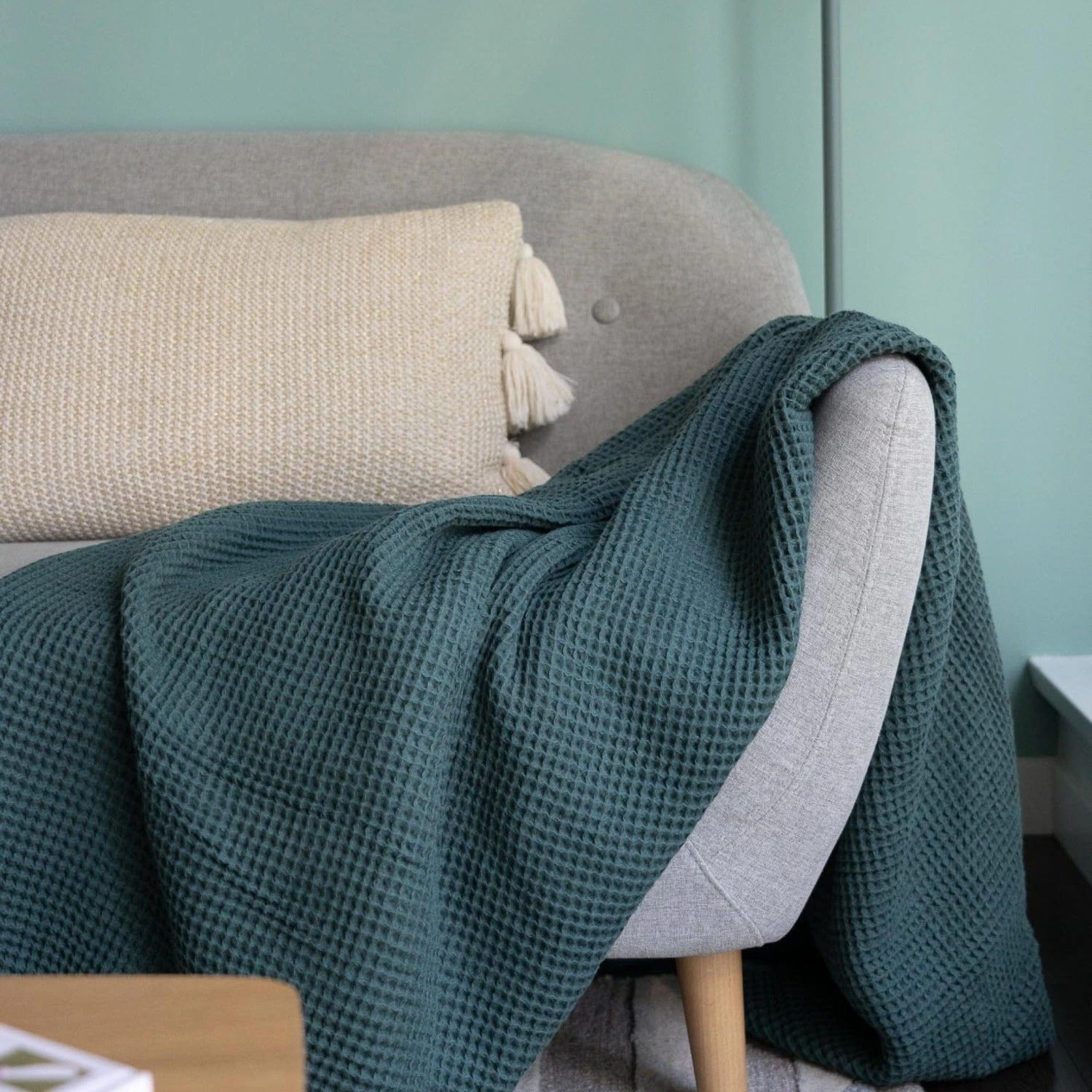 Waffle Throw blankets function as a beautiful accessory for your couch or bed while also begging to wrap you up in exceptionally soft organic cotton. Woven with premium long-staple cotton featuring a double-stitch binding, Waffle Throws bring elegance to any room and luxury to every snuggle. Â
