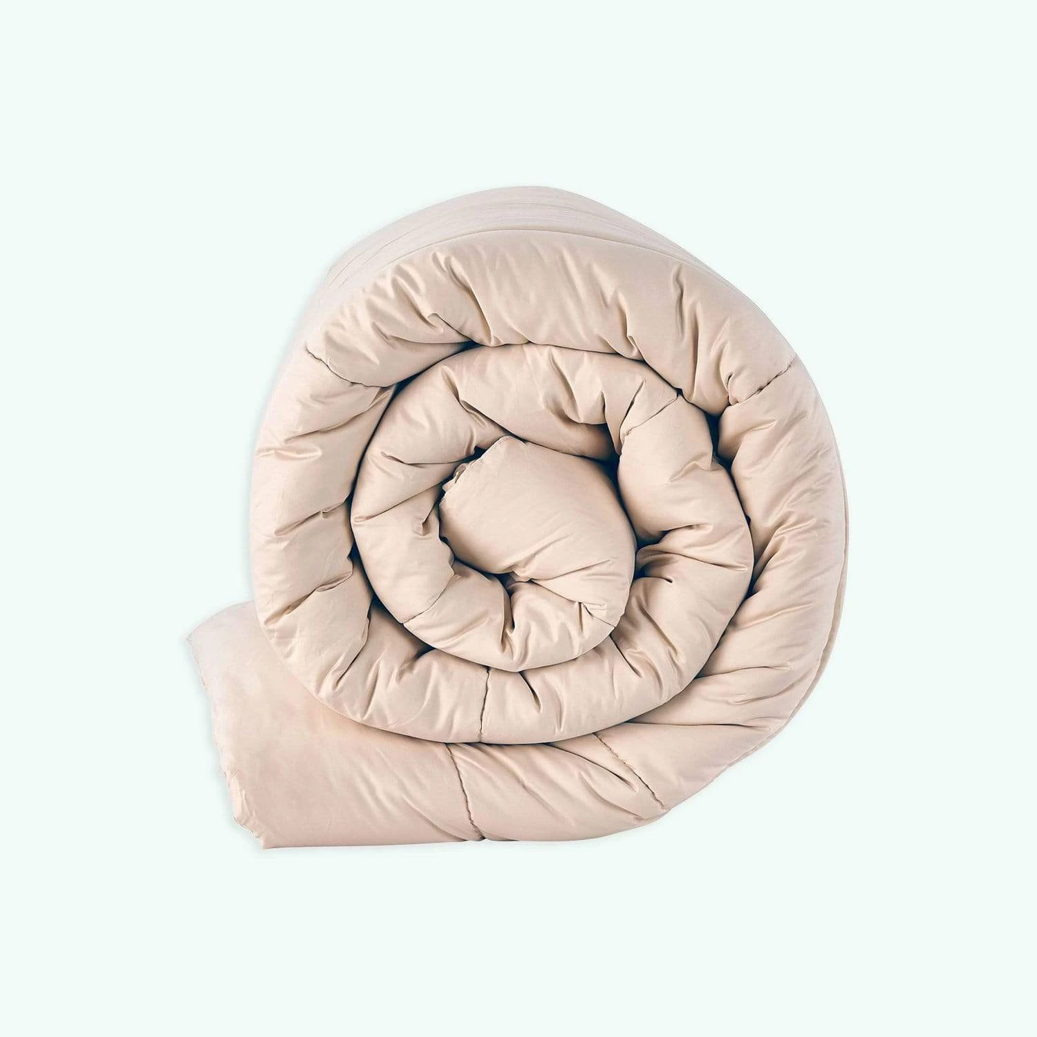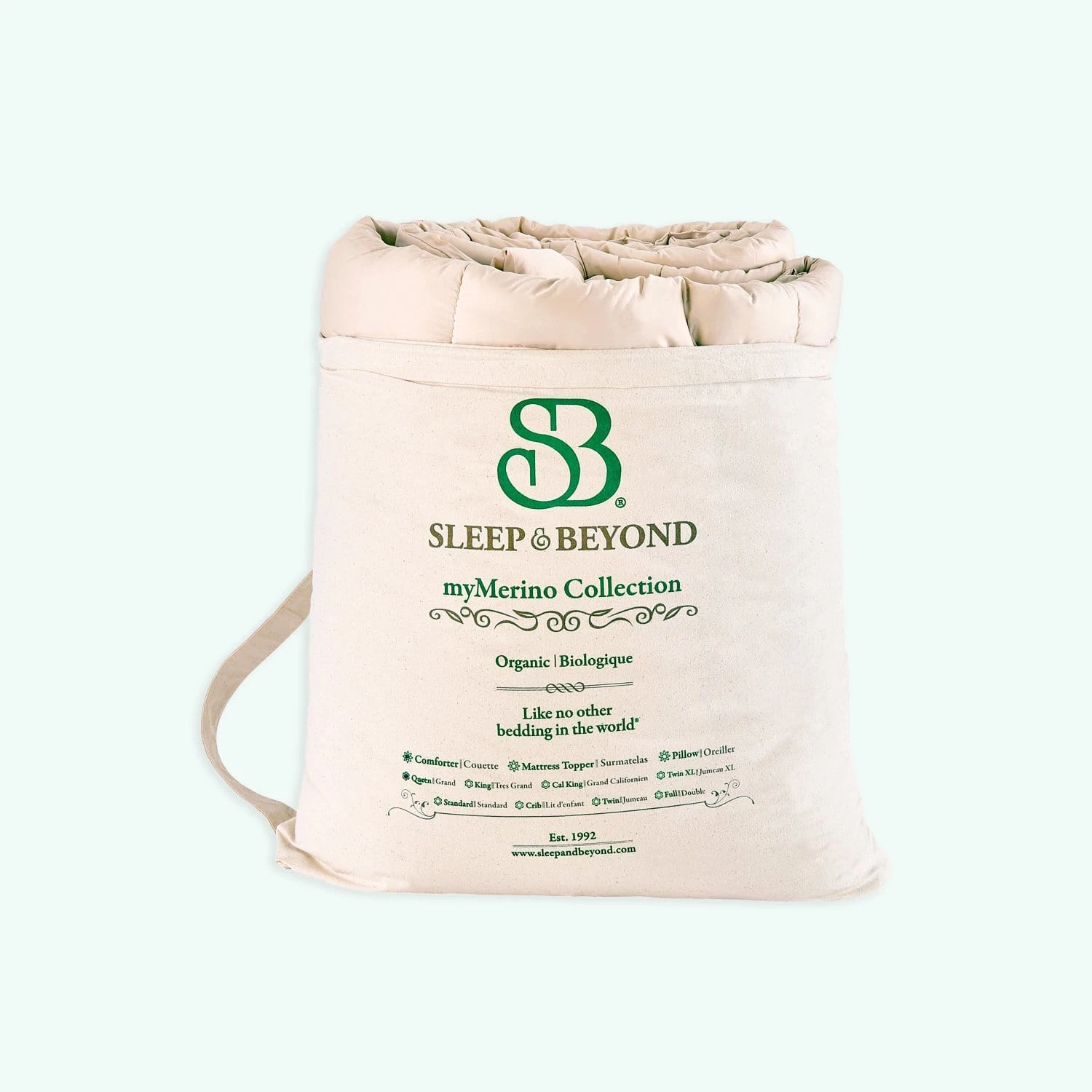 Engulf and surround yourself in a relaxation cloud with Sleep & Beyond organic merino wool comforter. Super breathable fabric helps regulate body temperature, keeping you cool in the summer and warm in the winter. Naturally hypoallergenic, free of all harmful chemicals, toxins, synthetics, and plastics. This comforter will last many years with proper care.