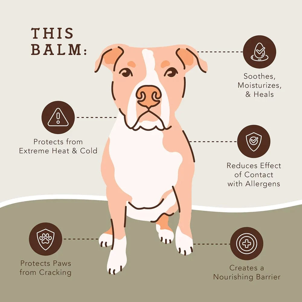 Did you know that dogs are born with incredibly soft and sensitive paw pads that were originally their natural defense while roaming in the wild? Unfortunately, things like hot pavement, extreme temperatures, and harmful allergens can roughen, crack, and peel their paw pads. This pawtection balm provides a nourishing shield for your furry friend’s paws, allowing them to roam freely on any adventure, no matter the season! This easy-to-use topical treatment is made with all-natural, organic, plant-based ingredients, making it the perfect armor for your pup in any environment.