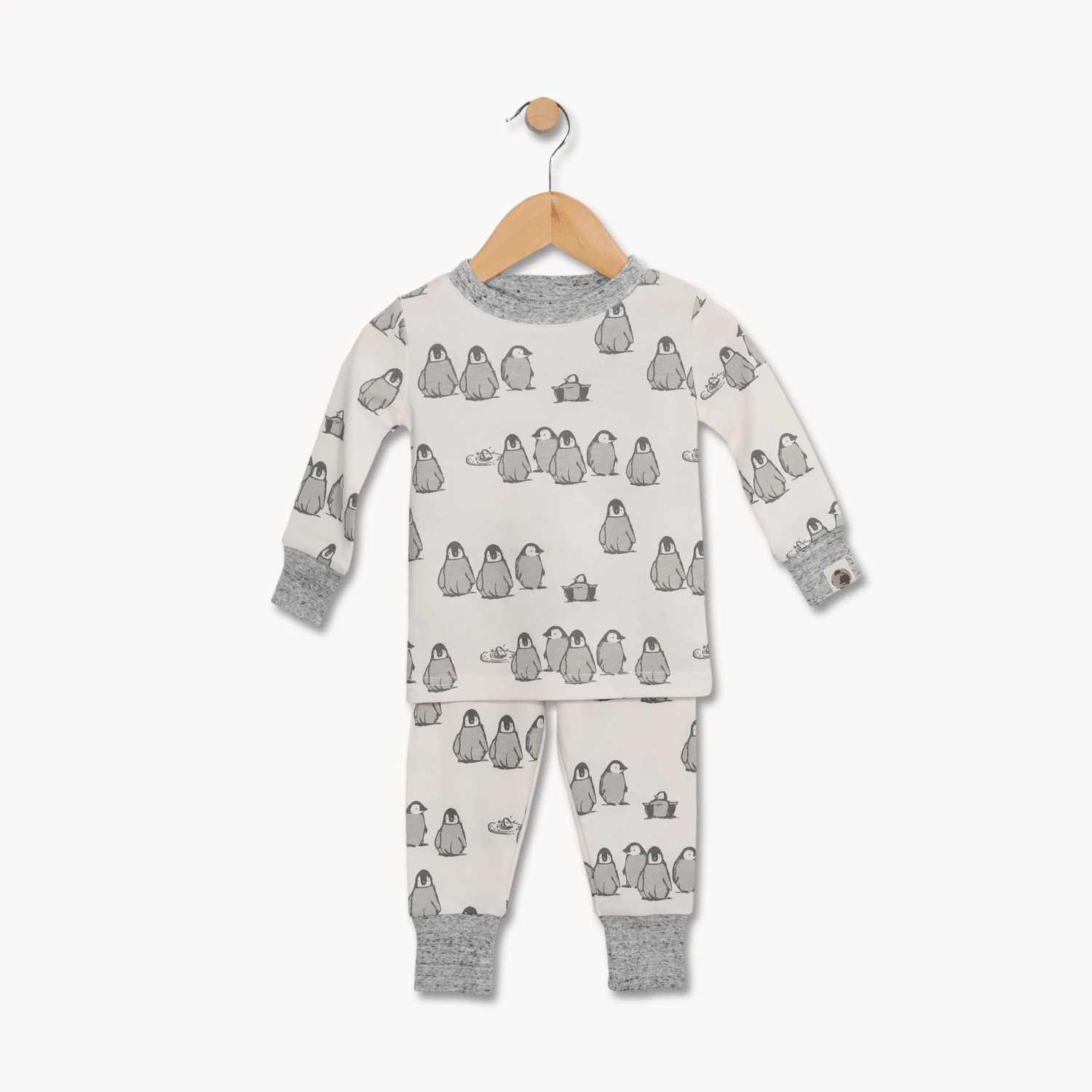 Embrace sustainability in our charming 2-Piece Penguin Print PJ Set, perfect for eco-friendly evenings. Created with our signature ultra-soft fabric, this set embodies comfort, cuteness, and care for the environment. Now available in toddler sizes, allowing your child to grow with us and coordinate with siblings for matching moments. We believe in a greener bedtime. Each set recycles 4 plastic bottles into soft, wearable clothing, reducing waste in landfills and oceans. With GOTS certified organic cotton and recycled polyester, these PJs have a lower environmental impact and support a cleaner lifestyle. As part of our commitment to giving back, a portion of every purchase goes towards preserving endangered species.