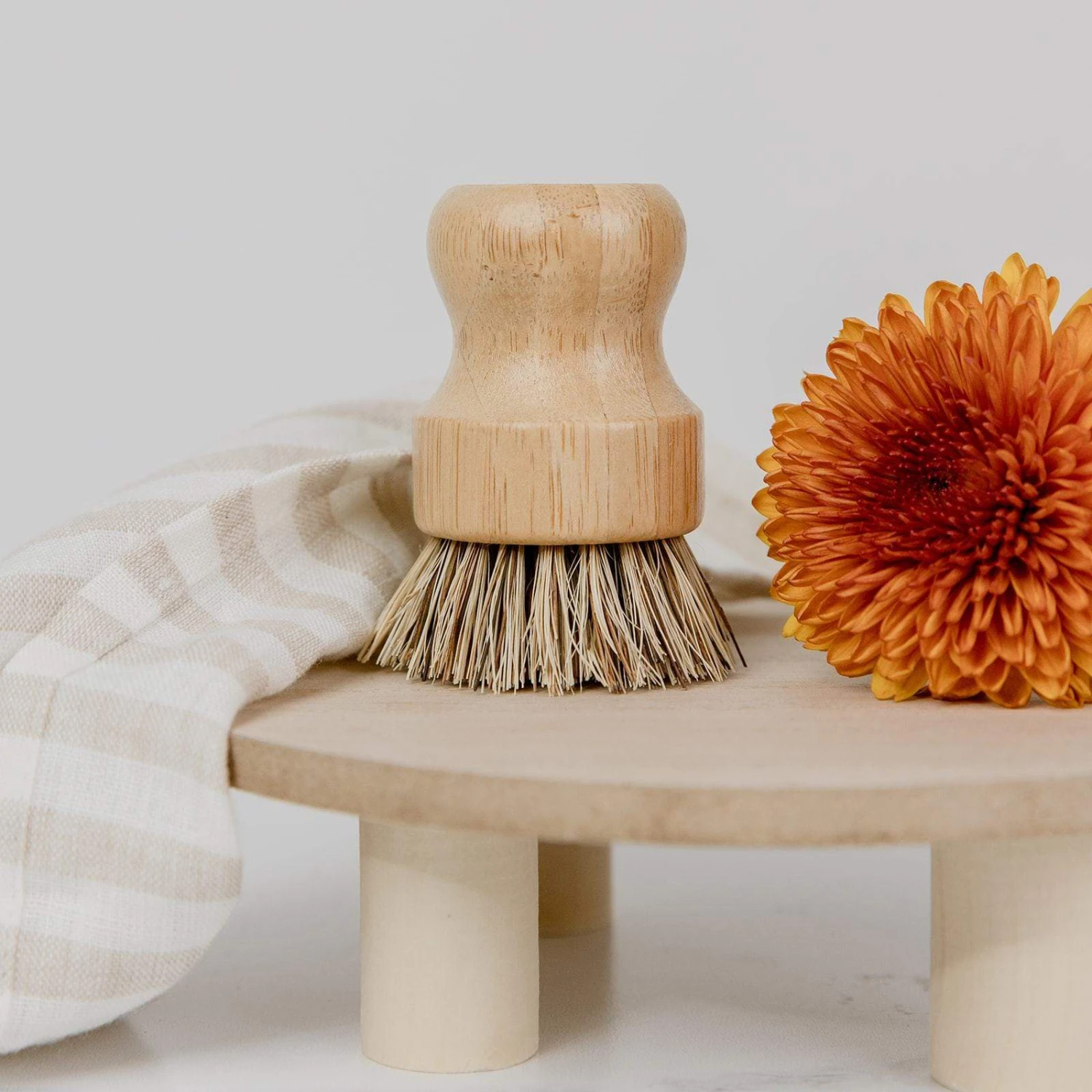 Retiring plastic cleaning tools is easy with our Bamboo Pot Scrubber made with sisal fiber + palmyra fiber bristles. As sustainable as it is durable, this hand held scrubber gets stuck on food with ease thanks to its heavy duty plant fiber bristles. Great for cast irons and non-stick pans alike, making the switch to a zero waste kitchen just got a little bit easier. Â