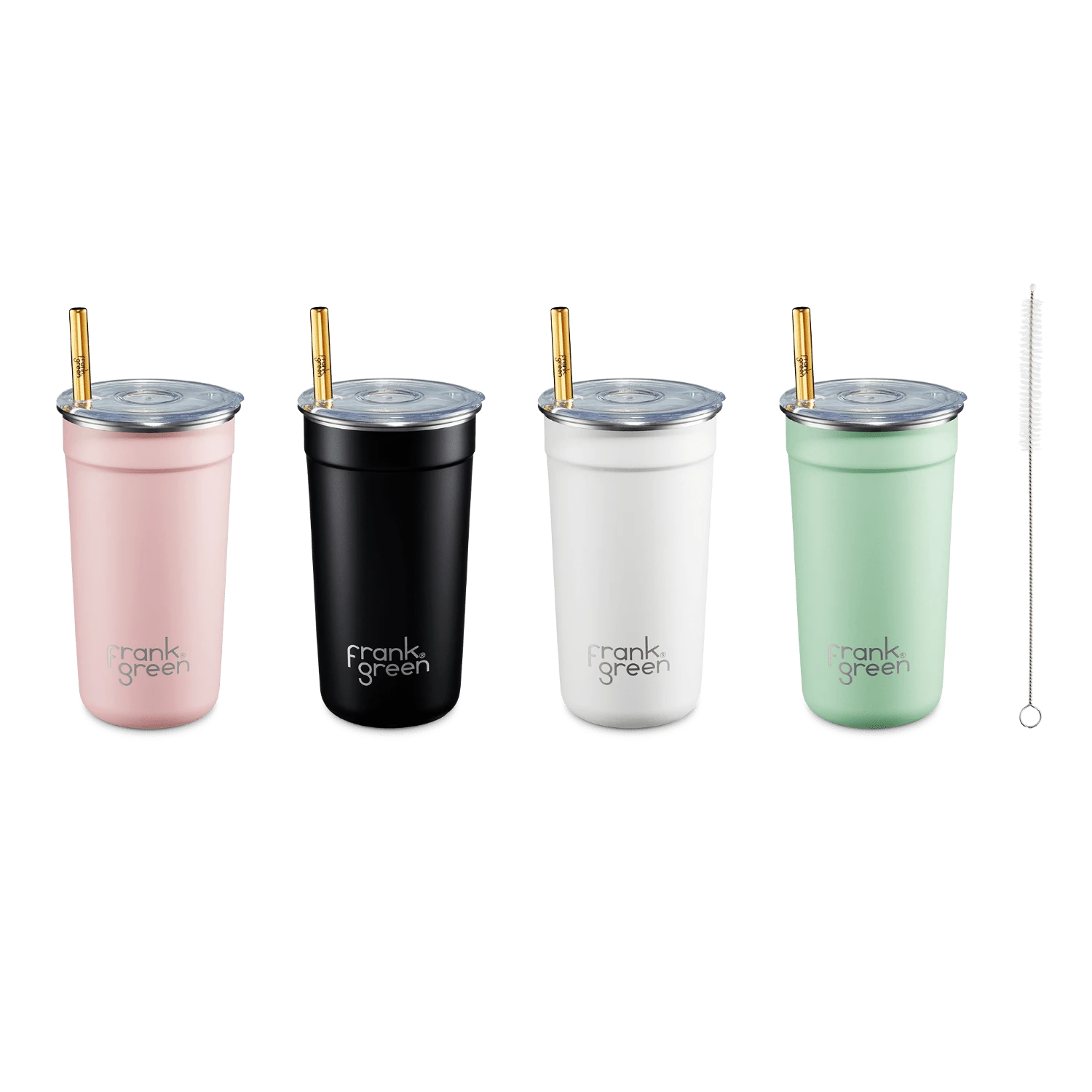 The award-winning Frank Green, known for their innovative designs for all things beverages, is at it again with their reusable party cup sets. Each set is a beautiful composition with gold stainless steel straws, splash-proof lids and perfectly stackable for storage.  Perfect for smoothies, coffee and cocktails, just two weeks of use is enough to offset the environmental impact of the making of the cup and keeping trash out of landfills.Â
