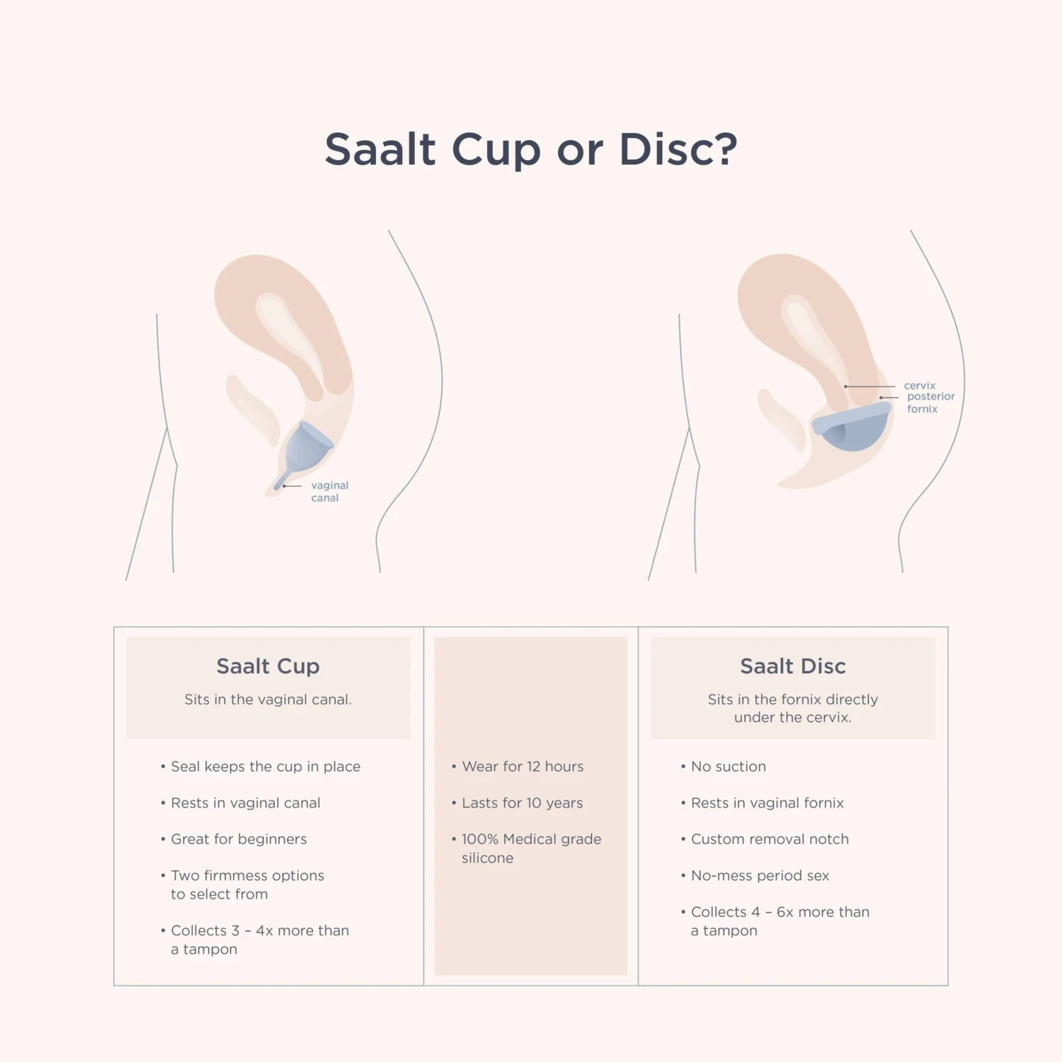 While designed to last up to 10 years, when it’s time to retire your Saalt Cup, check with your local recycling center to see if they accept medical-grade silicone. Alternatively, repurpose it for non-medical household use or dispose of it in general waste, where it will have a significantly smaller footprint than disposable menstrual products.