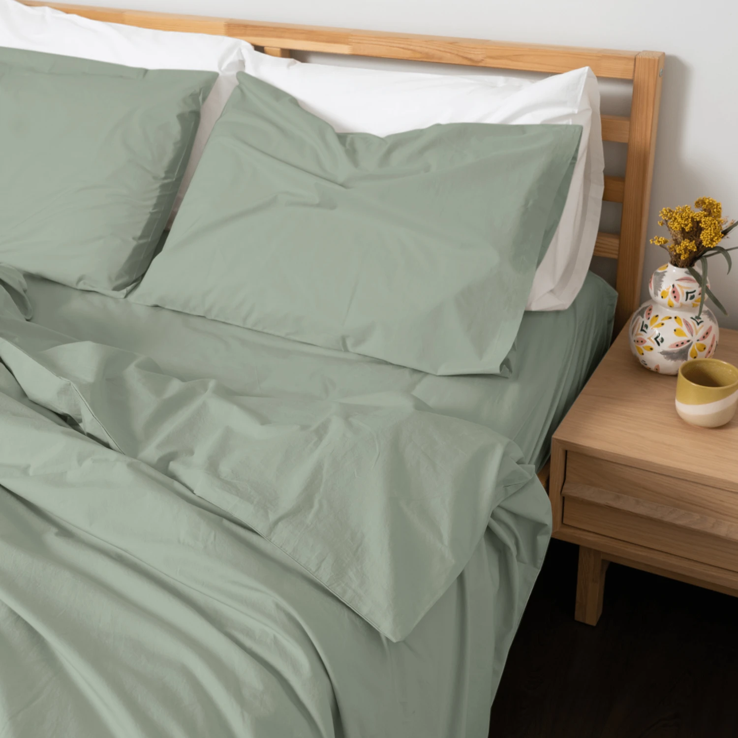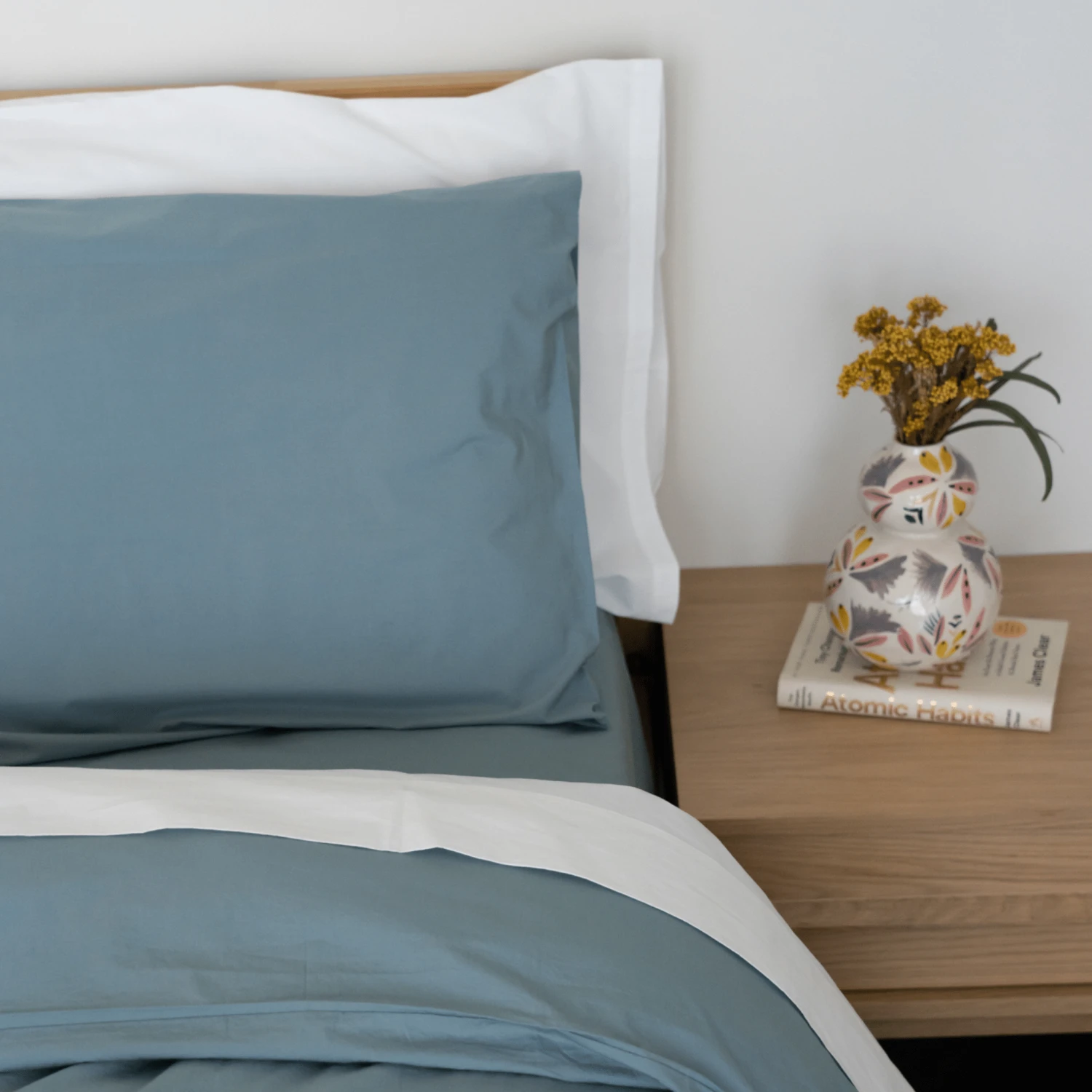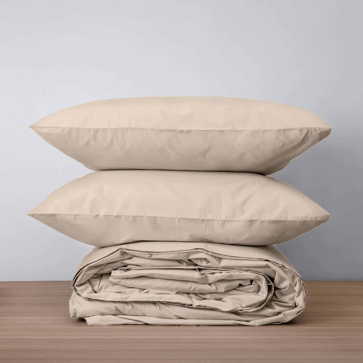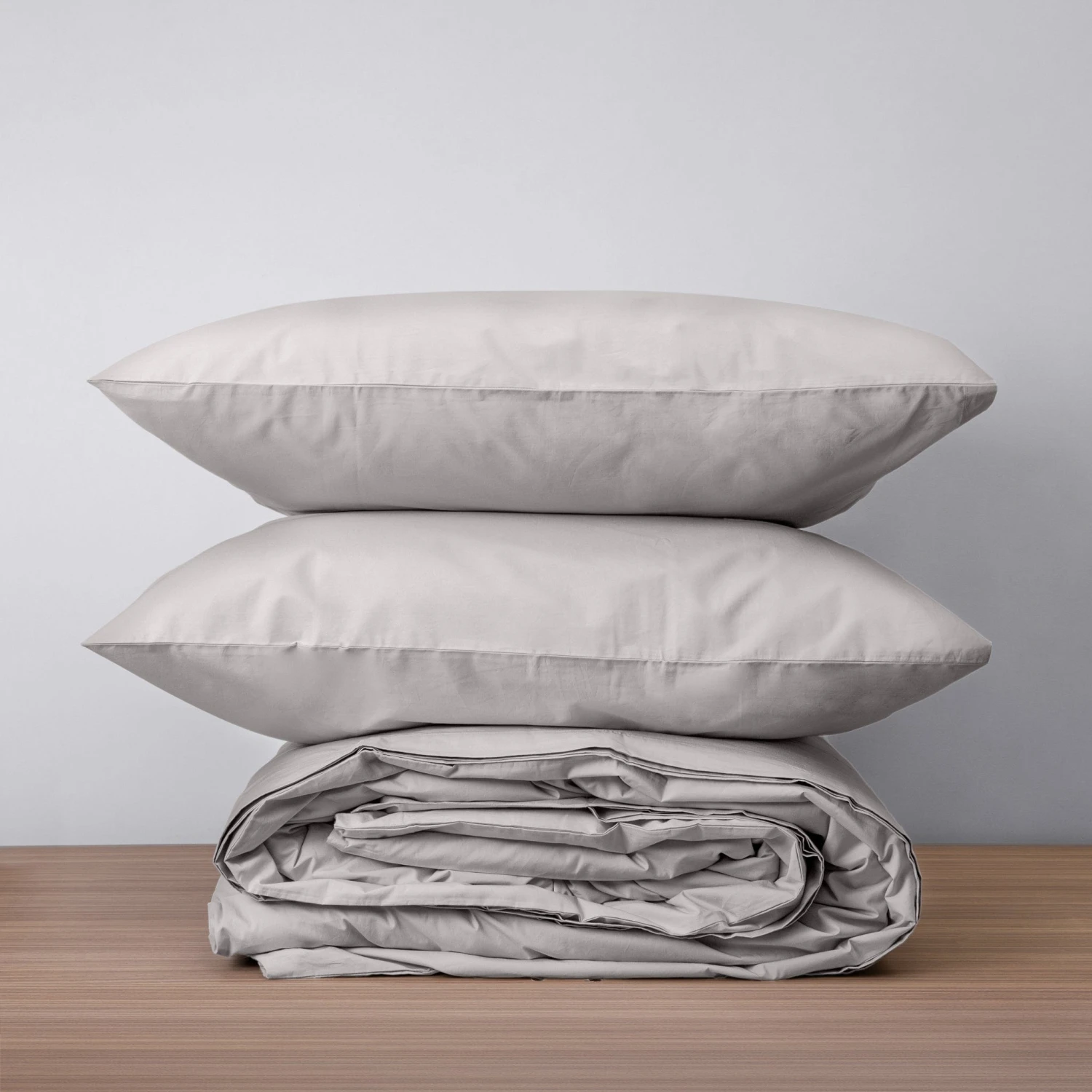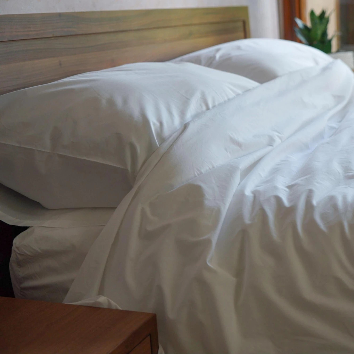 Crafted from 100% GOTS-certified, long-staple organic cotton, our percale duvet set is both sustainable and gentle on your skin. With a 300 thread count, this breathable fabric provides a cool, crisp feel, making it ideal for warmer sleepers or the summer season. Featuring a matte finish and pre-washed for a perfect out-of-the-box experience.