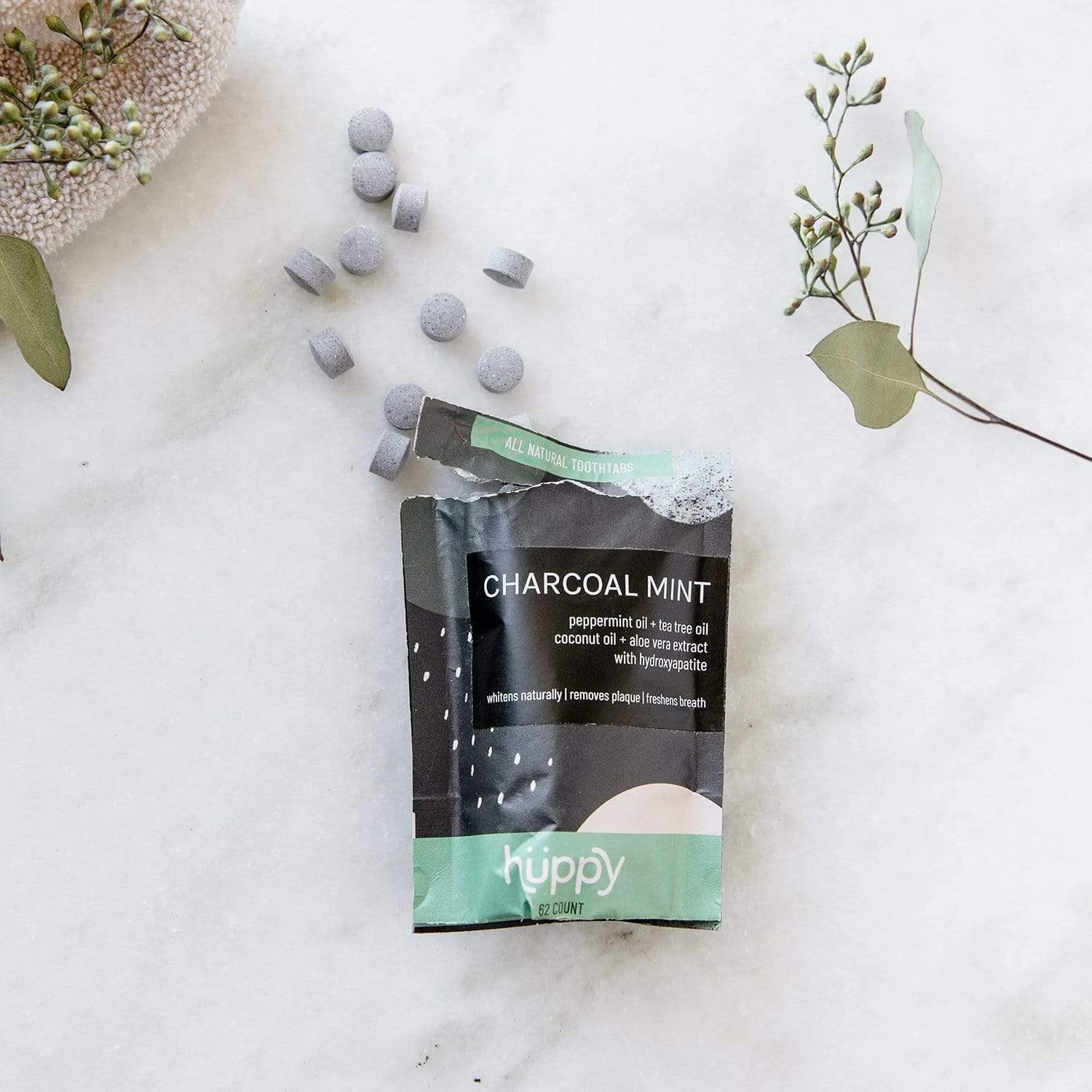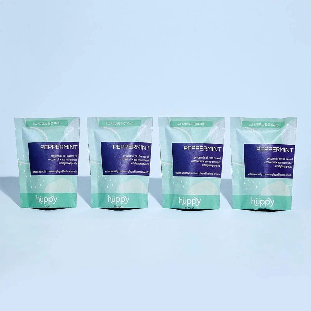 Brighten up your daily routine with a refill supply to Huppy Toothpaste Tablets with nano-hydroxyapatite, a non-toxic fluoride alternative. Refill pouches are made from 100% paper and are backyard-compostable. Made with clean, sustainable ingredients like peppermint oil, coconut oil, aloe vera extract, and xylitol. Foams easily and completely non-chalky.Â