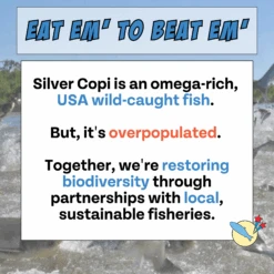 By choosing invasive Silver Carp over conventional protein sources, Chippin helps protect biodiversity and reduce overfishing. Compared to traditional meats, Silver Carp uses 80% less land and water and emits significantly fewer greenhouse gases. Every bite supports a healthier ecosystem.